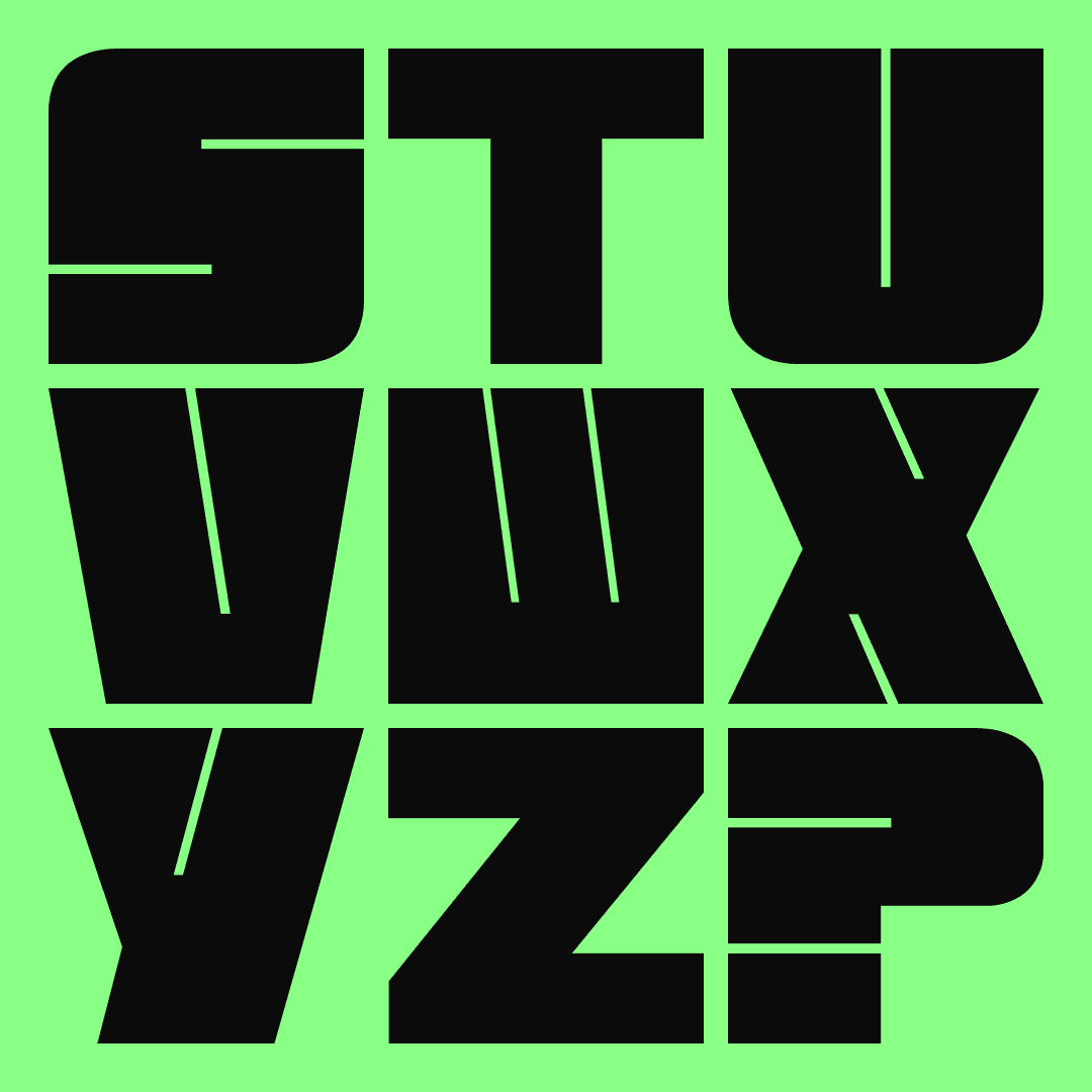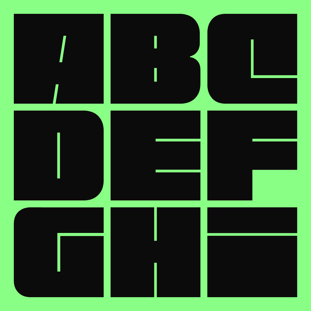 An ongoing exploration of typographic behavior and form. I experimented with dynamic paragraphs where weight and angle animate through rhythm, and modified existing letterforms to design my own bold, square typefaces.